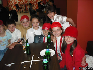 Şi o chestie care ne-a amuzat pe câţiva dintre noi a fost când puştiul cu tricoul alb a venit cu farfuriuţa cu prăjitura, hotârât, aşezându-se la masă. La fel de hotărât a trântit farfuria de masă, să simtă lumea bărbăţia lui. Impactul farfuriei cu masa a fost atât de brusc încât prăjiturica a sărit ca un arc din farfurie. Puştiul nostru, la fel de hotârât ca la început, a înfipt mâna în ea şi a pus-o la loc cu o atitudine gen “stai aici că-ţi iei bătaie!”.