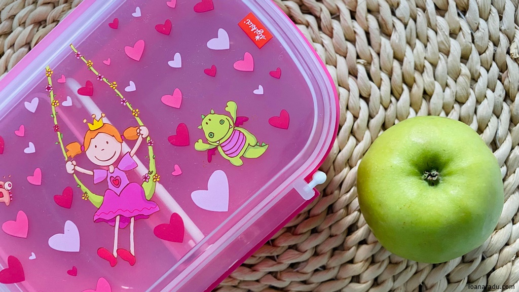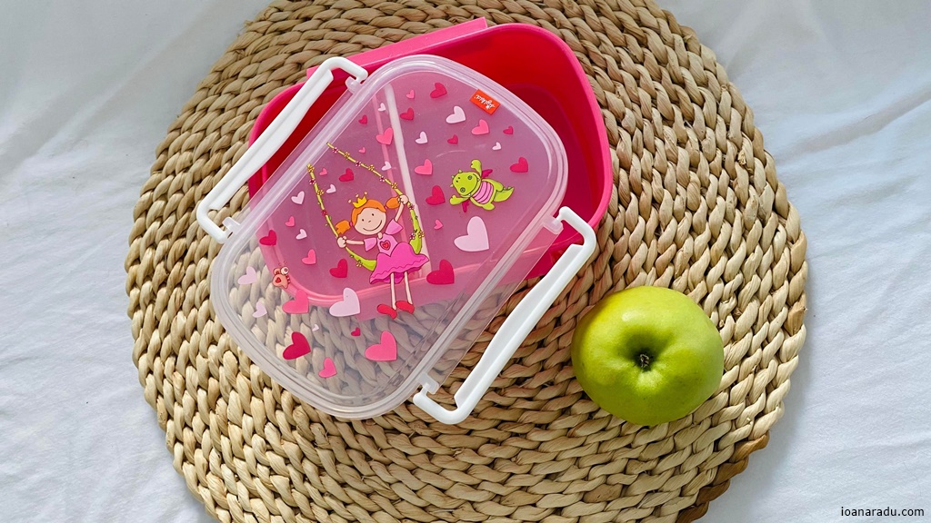 E roz, culoarea mea preferată (hey, don’t judge!), are capac transparent, iar la interior are un mini bol separat. Ca o caserolă compartimentată, numai că acel mic compartiment de la interior este detașabil. Mi se pare perfectă caserola asta pentru zilele în care am la mine mâncare pe care vreau să o încălzesc la cuptorul cu microunde de la serviciu, dar separat am și o selecție mică de brânzeturi și crudități pe care vreau să le păstrez la temperatura camerei.