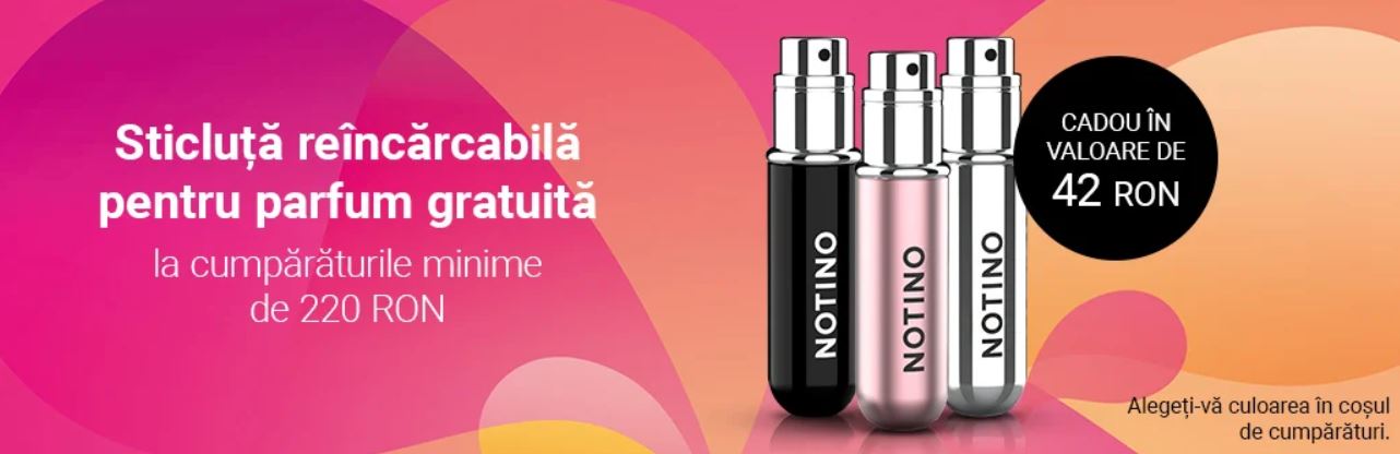 Vă puteți cumpăra acum parfumul preferat sau unul de care vă este dor și pe care plănuiați oricum să-l achiziționați din nou. E momentul potrivit pentru că aveți parte, gratuit, de sticluța reîncărcabilă pentru parfum, ideală pentru călătorii cât și pentru viața agitată de zi cu zi.